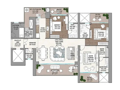 The amazingly crafted residential project features fully loaded apartments in 3 and 4 BHK configurations and each apartment in this residential enclave is thoughtfully designed to maximise space. The apartments are developed with spacious balconies, contemporary interiors, and large windows to make these homes perfect for families looking for a luxurious living environment.